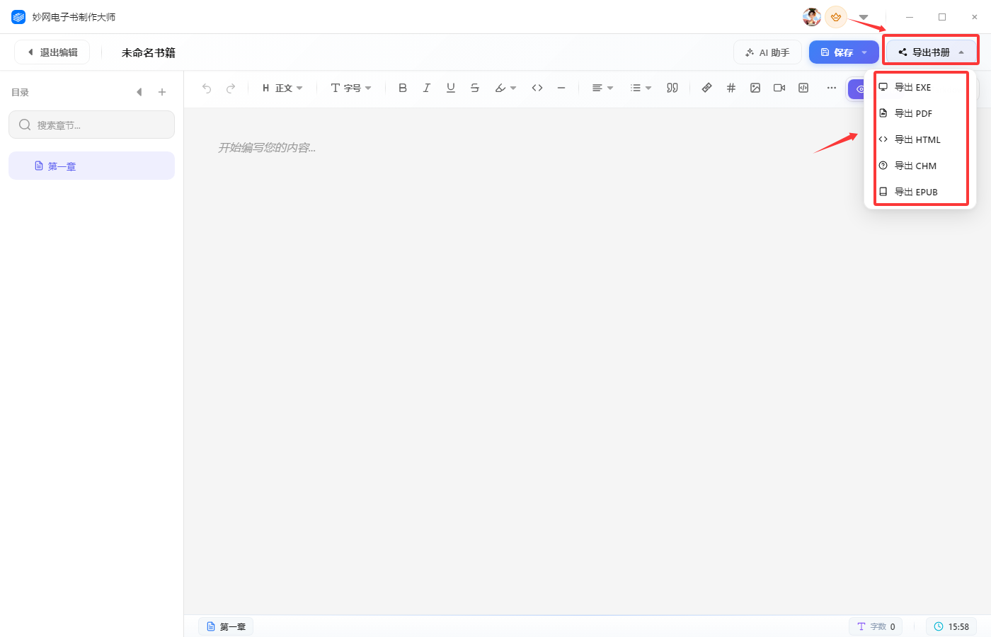 6.可导出EXE、PDF、HTML、CHM、EPUB格式文件,方便保存