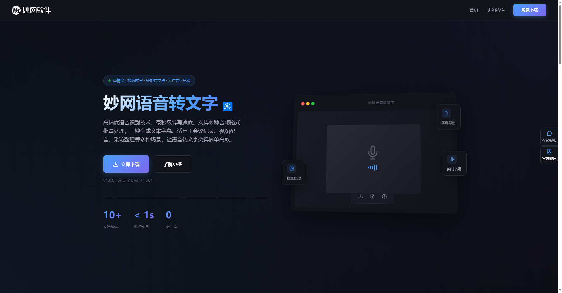 采用先进深度学习模型,语音识别准确率高达98%以上,支持中文、英文等多种语言识别